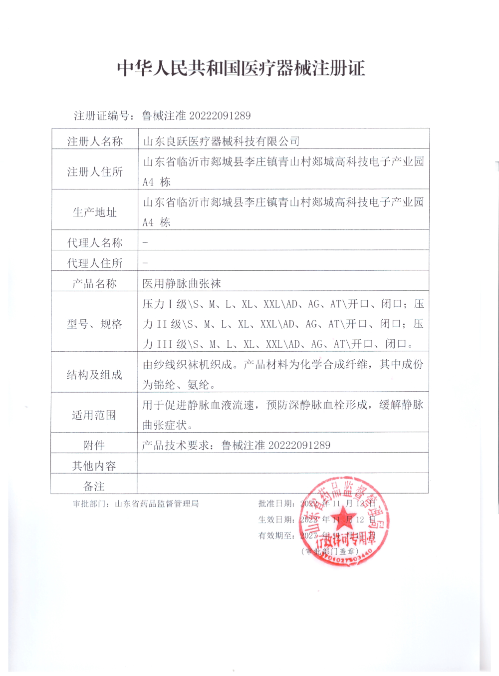 中华人民共和国医疗器械注册证